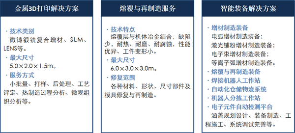當(dāng)前,公司擁有大型智能化廠房以及國際先進的生產(chǎn)線已投入使用,通過了ISO9001質(zhì)量管理體系認證,具備軍工三級保密資質(zhì),擁有大型熔鍛銑合一增材制造、激光選區(qū)熔化(SLM)、雙機器人協(xié)同增材制造等系列設(shè)備。