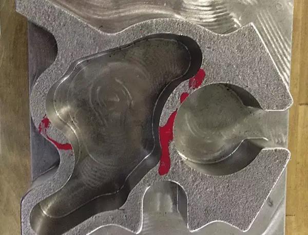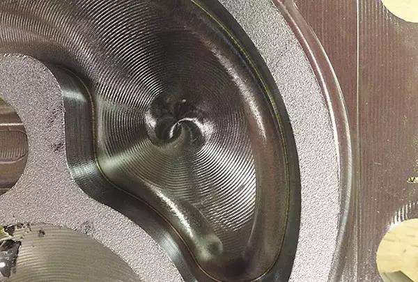 另一種高效加工方法是擺線刀具路徑銑削,一種包含向前移動和逐步進(jìn)刀的圓形銑削方式。銑刀沿螺線移動,重復(fù)層切被加工材料。擺線是一種2D刀具軌跡,也可用來銑槽和開腔,以解決空間狹小處的排屑問題。另外,擺線銑削也可用來清除零件型腔內(nèi)部粗加工銑削時留下的大圓角。