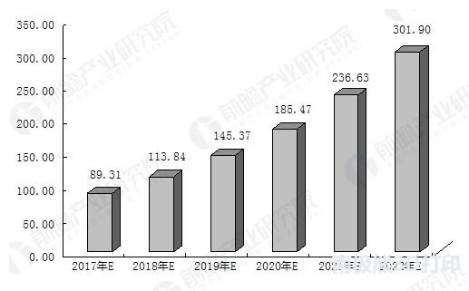 2017-2022年全球3D打印市場(chǎng)規(guī)模預(yù)測(cè)(單位:億美元)