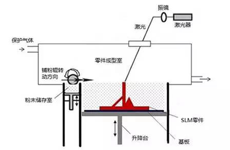 激光選區(qū)熔化技術(shù)(Selective Laser Melting,SLM)是由粉床選區(qū)激光燒結(jié)技術(shù)(SLS)發(fā)展而來,以金屬粉末為加工原料,采用高能密度激光束將鋪灑在金屬基板上的粉末逐層熔覆堆積,從而形成金屬零件的制造技術(shù)。