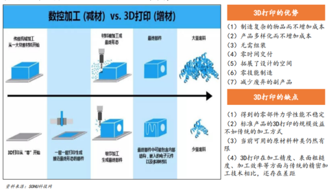 未來(lái)3D打印將有望深刻改變當(dāng)前的商業(yè)模式,目前3D打印處于快速成長(zhǎng)階段,但在整個(gè)制造業(yè)當(dāng)中的占比仍非常小。我們認(rèn)為,3D打印更大范圍的推廣和應(yīng)用,有賴于原材料和設(shè)備價(jià)格的進(jìn)一步的下降,并結(jié)合商業(yè)模式的創(chuàng)新和開(kāi)拓。